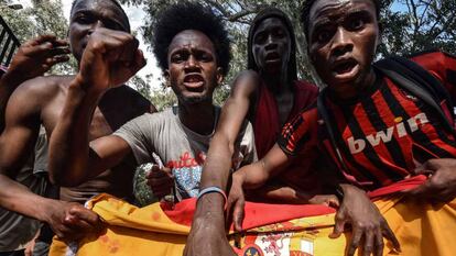 Fiesta en Ceuta y en Marruecos. Resuenan los rezos de los 2.000 musulmanes que, en la explanada ceutí de Loma Margarita, se entregan a la pascua del sacrificio cuando, a tres kilómetros, un suceso rompe el ambiente de celebración. En la frontera, 116 subsaharianos consiguieron este miércoles romper y cruzar la valla desde la zona marroquí. En su paso resultaron heridos siete guardias civiles y cinco migrantes. Con este nuevo asalto ya son 718 las personas llegadas por esta vía en menos de un mes y 1.316 las acogidas en el centro de estancia ceutí, que solo cuenta con 512 plazas. “Lo tenían planificado. Han aprovechado el rezo previo al sacrificio de los animales”, destacaba un agente. En ese momento, en torno a las 9.00, los migrantes accedieron a la ciudad autónoma a través de un punto fronterizo entre la Finca Berrocal y la zona de la ITV. Es el mismo lugar en el que el pasado 26 de julio hicieron lo mismo otros 602 subsaharianos.