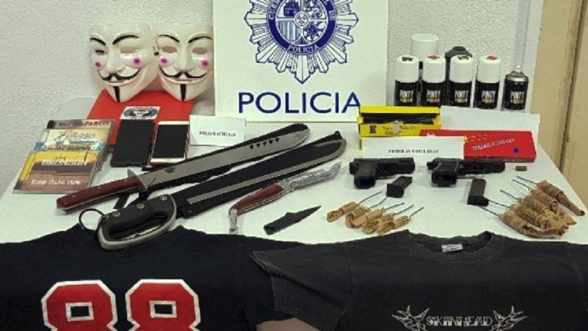 La fase final de la operación ha culminado con la realización de tres registros domiciliarios en Toledo, uno de ellos en la sede de Hogar Social,. Además, entre los arrestados se encuentra uno de los líderes de este grupo de extrema derecha, que cuenta con un largo historial delictivo, y que ejercía funciones de financiación, adoctrinamiento y captación de nuevos miembros. Entre los objetos intervenidos por los policías se encuentran dos armas cortas, dos machetes, una navaja de grandes dimensiones, así como caretas, teléfonos móviles y varios soportes de almacenamiento informático.
