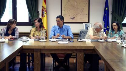 “Haremos un Gobierno justo y progresista, feminista, que blinde los servicios públicos”, dijo la ministra portavoz, Isabel Celaá, para resumir el encuentro de Quintos de Mora. “Es ahí donde podemos encontrar la justicia que debe ser restaurada a aquellos ciudadanos a los que ha sido arrebatada”. Los ministros debatieron sobre las estrategias y la situación de cada sector, pero la línea general es que Sánchez ha pedido a su equipo que llene la agenda de los próximos meses con todas las medidas progresistas ya anunciadas y otras que puedan entrar. El objetivo es ocupar todo el espacio político y aprovechar al máximo el escaparate de La Moncloa, que ya ha dado enormes réditos al PSOE y le ha colocado como primer partido en las encuestas después de ocho años siendo segundo, tercero e incluso cuarto. “Estar en el Gobierno es la mejor campaña electoral posible. Tú no haces promesas, como en la oposición, tomas decisiones y las llevas al Parlamento. Si no lo salen, puedes presionar a tus socios y culparles políticamente. Vamos a estar en campaña permanente”, resume un dirigente.