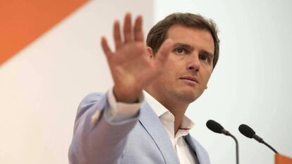 El cambio de escenario político —con un Gobierno socialista y un liderazgo renovado en el partido histórico conservador— ha movido también a Rivera. El partido ha coincidido en las últimas semanas con el PP en los temas que prioriza —Cataluña, la inmigración y los impuestos— y en el enfoque de oposición. La cúpula asegura que no le preocupa que los ciudadanos les perciban más a la derecha, como ha revelado el CIS, ni ha previsto un plan para revertirlo. Se ha lanzado a la batalla con el PP de Pablo Casado.