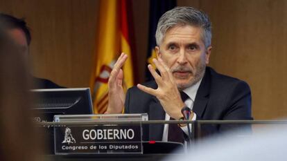 El ministro del Interior, Fernando Grande-Marlaska, ha defendido este miércoles la mano dura ante las entradas violentas en territorio español. “Humanidad no es permisividad”, ha resumido en la comisión de Interior del Congreso.