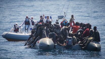Lo habitual es que los barcos que se topan con migrantes en alta mar, como este al que EL PAÍS accedió vía Frontex, los trasladen a embarcaciones de Salvamento Marítimo para poder seguir con la vigilancia. A diario, un buque inmenso de salvamento recoge al pasaje de las distintas embarcaciones para llevarlos a puerto. Su destino depende de su origen. En esta zona, los magrebíes son desembarcados en Algeciras; los subsaharianos, en San Roque, un municipio cercano que alberga un novísimo centro de recepción. Los acuerdos hispano-marroquíes facilitan las deportaciones, por eso este grupo sigue un itinerario burocrático distinto.