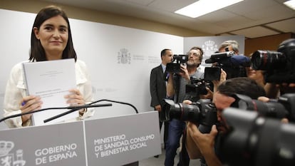 "No he cometido ninguna irregularidad”, ha asegurado este lunes la ministra de Sanidad, Carmen Montón, que ha tenido que salir al paso de una información sobre supuestas anomalías en un máster que cursó en la Universidad Rey Juan Carlos (URJC) en 2010 y 2011. “Yo hice ese máster y tengo materiales que acreditan mi honestidad (…) No todos somos iguales”, ha repetido. Montón, que ya tuvo que dar explicaciones del asunto en primavera en las Cortes Valencianas, antes de ser nombrada ministra, ha tenido tiempo de recopilar información y esta mañana ha exhibido varios documentos, desde el título oficial al trabajo fin de máster (TFM). También ha añadido que conserva el ordenador en el que redactó los trabajos y “30 correos electrónicos”.