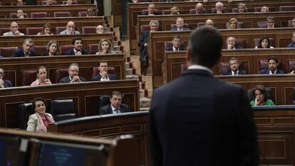 La primera pregunta en la sesión de control de Pablo Casado como líder de la oposición al presidente del Gobierno era sencilla, simple y hasta obvia. Le preguntó cómo valora la situación política y económica del país, y Pedro Sánchez intentó, de entrada, que el asunto se ciñese a la cuestión pero fue imposible. El presidente replicó que "la economía va bien y la política, mejor" pero el trasfondo no era ese. Casado criticó que Sánchez hubiese llegado a La Moncloa y llevase ya 100 días allí sin ganar unas elecciones y como resultado de su "hipoteca a pagar a plazos" con los "populistas, independentistas y batasunos". Luego le achacó todos los males que se detectan en la economía española y se volcó sobre todo en cuestionar su política de diálogo, gestos y "apaciguamiento" con los nacionalistas catalanes y con el presidente de la Generalitat, Quim Torra.