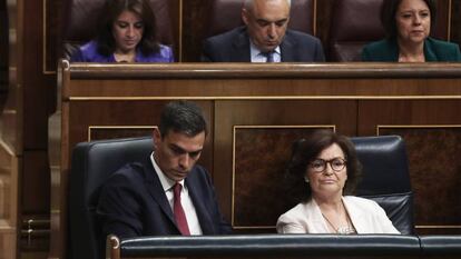 Todo estaba diseñado hace meses para ese momento. Pero cuando llegó, casi no se pudo ni celebrar. El pasado jueves, a mediodía, se votaba el decreto de exhumación de los restos de Franco. Un hito en el breve mandato de Pedro Sánchez. Había mucha emoción entre los diputados del centro izquierda del hemiciclo, y las tribunas del público, donde había luchadores antifranquistas o escritores como Ian Gibson. Pero en el banco azul, en una fotografía muy llamativa, estaba la vicepresidenta, Carmen Calvo, completamente sola.