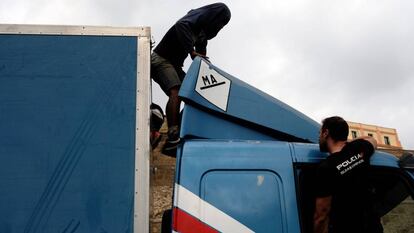 Lleva 11 meses en la ciudad, deambulando para buscarse la vida los días cuyas noches pasa en el puerto intentando encaramarse como polizón en uno de los buques que salen diariamente de Melilla hacia la Península. “Siempre me sacan (del barco). Si subo, me quedo en el centro de Barcelona hasta coger los papeles y, de ahí, a Suecia”, afirma.