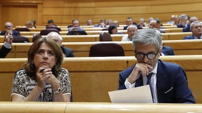 El Ejecutivo diseñó varios gestos durante toda la jornada, especialmente en el Senado, para que la ministra se sintiera arropada. La fotografía del abrazo con el principal aludido, Grande-Marlaska, ofreció la imagen de que el problema está en vías de solución.