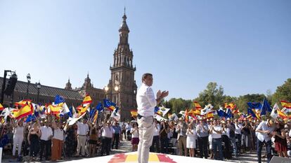 "El Estado autonómico se pensó para garantizar la igualdad entre españoles, no para destruirla", ha subrayado Rivera desde el escenario del acto en plena Plaza de España de Sevilla, ante varios centenares de simpatizantes que han ondeado banderas españolas, europeas y del partido, ataviados también con sombreros de paja con la bandera española de los que les ha provisto la organización. Los operarios han tenido que retirar varias decenas de sillas de plástico porque el partido no ha llenado el acto, en el que también han participado la líder de Ciudadanos en Cataluña, Inés Arrimadas, y el responsable económico del partido, Luis Garicano.