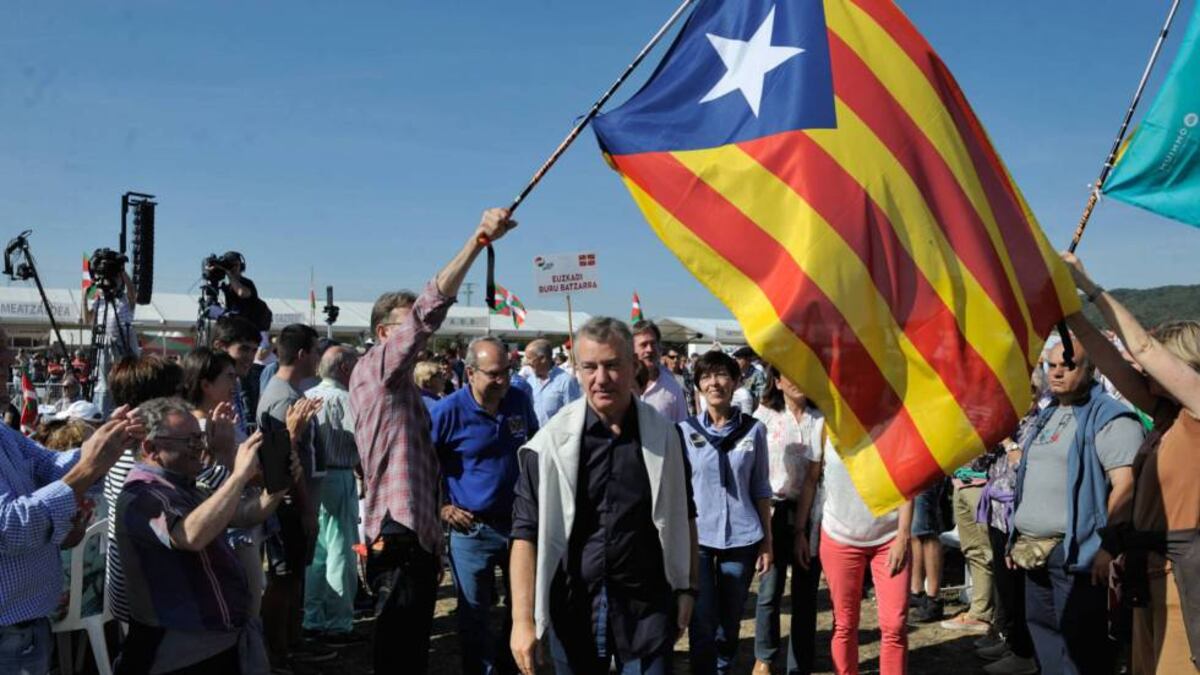 Aunque el PNV envió a dos representantes el sábado a Gernika a un acto de Gure Esku Dago (Está en nuestras manos), la asociación que defiende la celebración de un referéndum de independencia en Euskadi, durante el que se pudo escuchar un mensaje de Carles Puigdemont, el proyecto de la dirección del partido sigue asentado sobre la premisa de lograr un pacto con la Administración central.