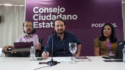 El líder de Podemos explica al consejo ciudadano estatal de su partido la negociación de los Presupuestos con el Gobierno