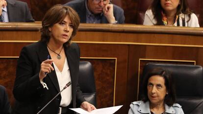La ministra de Justicia ha explicado en el Congreso su relación con Villarejo y ha acusado al excomisario y a los grupos políticos de la derecha de querer tumbar al Gobierno