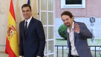 Hasta que termine la legislatura, previsiblemente en 2020 si se cumplen los planes de La Moncloa, el Gobierno de Pedro Sánchez está obligado a contar con el apoyo parlamentario de Unidos Podemos, su socio principal, y del resto de grupos que le ayudaron a llegar a la presidencia tras la moción de censura del pasado junio. El primer reto llegará en los próximos días. Después de que presenten a Bruselas las líneas maestras de las cuentas generales —el lunes— el Ejecutivo tendrá que convencer a ERC, PdeCAT y PNV para que también respalden el acuerdo. “Es una tarea que le corresponde al Gobierno”, dice el líder de Podemos. “Pero nosotros estamos dispuestos a ayudar como ya hicimos en Cataluña”, puntualiza mostrando su optimismo en que conseguirán los números necesarios para la tramitación parlamentaria.