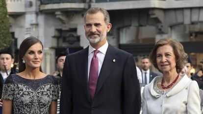 El potente foco mediático de los Premios Princesa de Asturias, considerados los más importantes del mundo después de los Nobel, siempre atrae a las protestas de una diversidad de causas. Desde hace unos años, coincidiendo con el aumento de muestras de desafección a la Corona, las protestas antimonárquicas tratan de exhibir su músculo junto a las de afectados por conflictos laborales, que acuden a las inmediaciones del Teatro Campoamor, donde se celebra la gala . La Marcha de la Dignidad ha centrado en esta edición su energía contra los galardones, “un evento” que “causa repulsa” a este movimiento “porque desde una fundación caduca y corrupta se busca dar prestigio y lavar la imagen a otra institución más caduca y corrupta aún, la Monarquía”.
