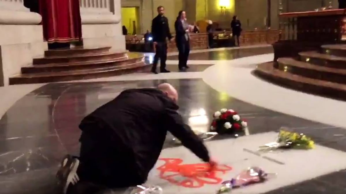 Un artista pinta una paloma en la tumba de Franco: “Ha sido un pequeño tirón de orejas”