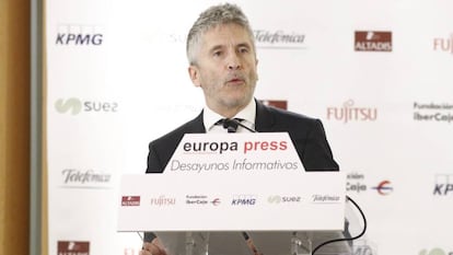 El ministro del Interior, Fernando Grande-Marlaska, se ha descartado este jueves como posible cabeza de cartel del PSOE a la alcaldía de Madrid. “Interior colma las pretensiones de un niño de barrio de Bilbao”, ha asegurado al ser preguntado en los desayunos de Europa Press sobre una supuesta oferta del presidente del Gobierno, Pedro Sánchez, para que se presente a las elecciones municipales del próximo mes de mayo. Grande-Marlaska sí ha admitido que conoció a Sánchez tres semanas antes de que triunfase la moción de censura contra Mariano Rajoy y este fuera elegido presidente del Gobierno, y que fue, precisamente, para ofrecerle encabezar la candidatura socialista al consistorio en la capital. "Posteriormente evaluó mis aptitudes y me pidió que admitiera la cartera de Interior. Y lo he asumido. Colma las pretensiones de un ciudadano español, de un niño de barrio de Bilbao", ha asegurado. Marlaska ya había deslizado antes que su intención es seguir al frente de la cartera al augurar que le queda "mucho recorrido en el ministerio".