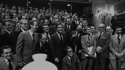 El optimismo se abrazó aquel día con el pragmatismo. El líder comunista Santiago Carrillo explicó las virtudes de la ley de leyes que habían empezado a votar: “Ha sido una limpia búsqueda de un acuerdo para despojar a la carta constitucional de cuestiones ideológicas que la hicieran impracticable o reprodujeran los términos de nuestras grandes querellas históricas”. Esa carta consolidaba la monarquía parlamentaria como la forma de estado con un Rey, Juan Carlos, designado por el dictador Franco y despojado por la Constitución de poderes ejecutivos.
