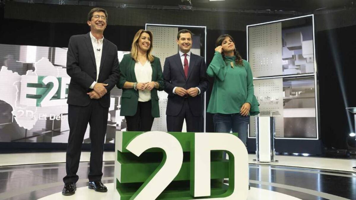 La lucha por encabezar el cambio en Andalucía se trasladó anoche al plató de Canal Sur donde se celebró el primer debate entre los principales candidatos a presidir la Junta. Todos los aspirantes de la oposición se quisieron presentar como una garantía para acabar con los casi 40 años de Gobierno socialista. Sin embargo, lo que se preveía como un todos contra Susana Díaz, se convirtió en un cara a cara entre los cabezas de lista del PP y Ciudadanos, Juan Manuel Moreno y Juan Marín, respectivamente, quienes pugnaron por cuál de los dos es el líder más creíble, solvente y capaz de capitanear ese cambio.