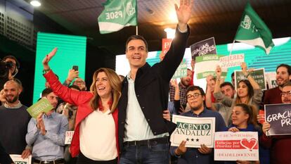 “No nos resignemos porque vayamos a ganar muy bien”, advirtió la presidenta de la Junta, en Marbella ante más de 2.000 personas. “Hay que votar mayoritariamente al PSOE para dejar con la miel en los labios a quienes tienen como única propuesta sumar para bloquear el gobierno de progreso de Susana Díaz”, insistió el presidente de España. Es la segunda vez que Sánchez acompaña a Díaz en la campaña electoral, después del accidentado mitin de Chiclana (Cádiz) del 18 de noviembre. Entonces, ambos dirigentes apelaron a la movilización de su electorado para conjurar el fantasma de un bloqueo de PP y Ciudadanos. A esa amenaza se ha añadido la sombra de la irrupción de Vox, una variable que la presidenta andaluza deslizó en el debate para acentuar el desvío a la derecha de Ciudadanos y tratar de recuperar a los votantes socialistas que se decantaron por la formación naranja, y cuya vuelta están percibiendo en el PSOE.
