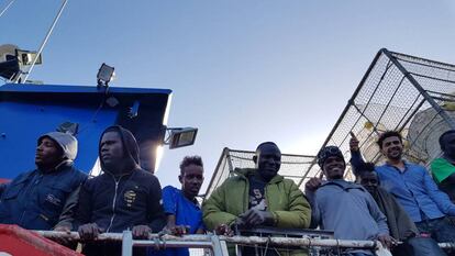 Antes del desvanecimiento del joven, parecía que todo acabaría este jueves. En la madrugada de ayer el barco recibió un email de los guardacostas libios para coordinar la entrega de los migrantes. El capitán Pascual Durá les sugirió que fuese sobre las 20.00, pero los guardacostas, imposibilitados de salir por el mal tiempo, acabaron ofreciendo al pesquero dos puertos libios, Trípoli o Al Khums. La sugerencia la reforzó en un comunicado la vicepresidenta Carmen Calvo, pero la tripulación declinó la oferta. “Lo prioritario es cuidar de la salud de estas personas. No podemos ir hasta el puerto”, han insistido a bordo del pesquero. El Open Arms cuenta con una doctora y una enfermera a bordo que realizará un chequeo a los rescatados.