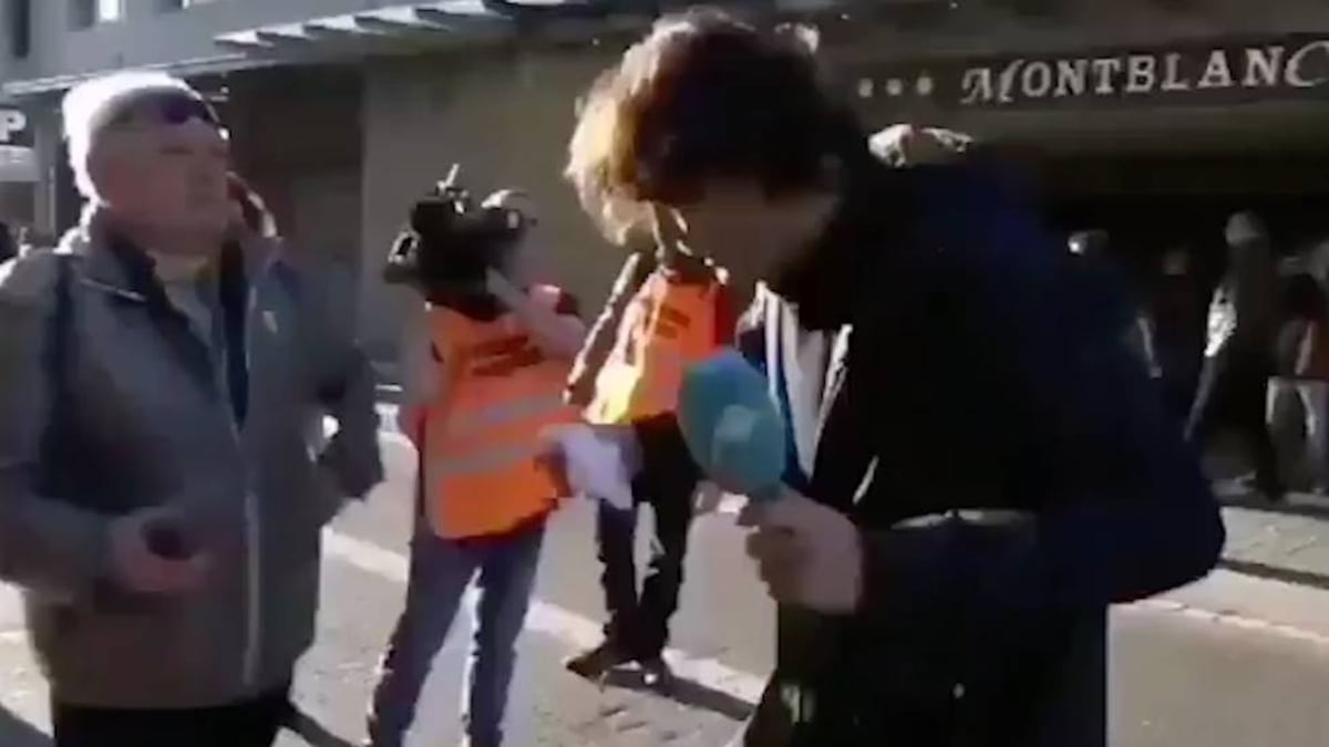 En el vídeo difundido por la cadena se pueden ver imágenes de golpes y un puñetazo al periodista, al que un manifestante con lazo amarillo proporciona unos pañuelos para que se limpie la sangre que le sale de la nariz. El reportero, mientras le increpaban antes de la agresión, pedía respeto: "Solo queremos informar". Tras limpiarse la sangre se ha dirigido a un grupo de manifestantes y les ha preguntado si estaban contentos con lo que habían visto. Ellos han contestado: "Solo venís a provocar".