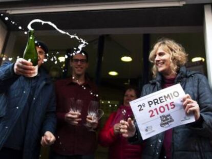 La pareja de niños cantó después otro quinto premio, el 7568. "¡Otro!", exclamó su madre aplaudiendo nerviosa. Después Nerea anunció el segundo premio, el 21015, que ha sido vendido en Albacete, Alicante y Barcelona y reparte 212,5 millones de euros en 170 series. "Anoche no quería cenar de los nervios que tenía", ha confesado la madre de la pequeña.