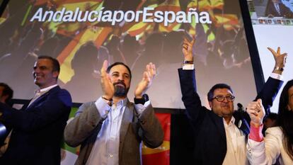 El líder de Vox, Santiago Abascal, critica la amenaza permanente de "cordones sanitarios" y exige a PP y Ciudadanos que se sienten con la formación de extrema derecha para “escuchar su programa electoral” y “atender en la justa medida de esos 12 diputados, ni más ni menos, las demandas de 400.000 andaluces”. “Vox ha repetido que no será obstáculo para el cambio en Andalucía, pero que tampoco será alfombra para la continuidad de las mismas políticas con otras siglas, sean las de PSOE-Podemos o las de PP-Ciudadanos”, ha insistido Abascal en Twitter.