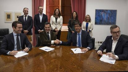 Rivera insiste una y otra vez en que nada le vincula a la formación ultraderechista, aunque en Ciudadanos no ocultan su incomodidad con el acuerdo con el PP antes de la investidura. "Creo que hubiera sido mejor centrarse en el acuerdo de gobierno entre el PP y Ciudadanos y que luego cada grupo hubiera votado lo que considerase", admite Villegas. El sueño de Ciudadanos era forzar a Vox a votar la investidura a cambio de nada, por el vértigo de ser el responsable de que Susana Díaz siguiera al frente de la Junta de Andalucía, pero las cosas han sido muy diferentes y el acuerdo con el PP tiene mucho detalle. Por eso ahora Ciudadanos se concentra en convencer a sus votantes potenciales de que ellos no han tenido nada que ver en esta negociación con la extrema derecha y su único vínculo es con el PP.