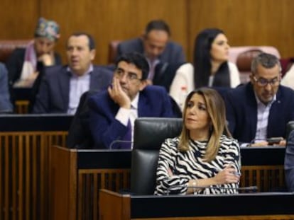 Susana Díaz empezó a ejercer la oposición, donde dice que permanecerá el tiempo que dure la legislatura. Su pronóstico es que será corta. El mensaje principal de la socialista fue el siguiente: el Gobierno es “legítimo”, pero de involución, porque “los votos de la extrema derecha” lo ha hecho posible. “Adolfo Suárez enterró el franquismo y usted va a acceder a la Junta con los herederos del franquismo”, le espetó Díaz a Moreno.