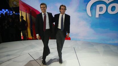 Por fuera, la convención del PP parece todo alegría, música, entusiasmo con el discurso de José María Aznar, que ha vuelto por la puerta grande para decir claro que él es ahora el hombre fuerte y que Pablo Casado es su heredero de verdad, no como Mariano Rajoy que le salió rana. Pero en los pasillos, el terror a una pinza entre Ciudadanos y Vox, la “moda” que crece sin freno, concentra todas las conversaciones.