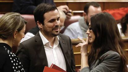 Garzón ha acompañado a Sol Sánchez, portavoz y candidata de IU en la Comunidad, que ha sustituido a Errejón después de que el dirigente entregara este lunes su acta de diputado. "Me incorporo hoy, no es la situación ni las circunstancias que hubiese preferido", ha afirmado la nueva diputada, que no se sentará en la silla de su antecesor en la tercera fila de la bancada de Unidos Podemos, al lado de Garzón. Podemos ha recolocado a algunos de sus diputados en el Congreso.