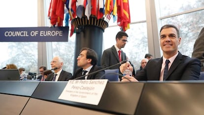 No hay día tranquilo en el Gobierno de Pedro Sánchez, que con sus 84 diputados vive cada semana como si existiera el riesgo de que fuera la última. En plena tormenta en España por la decisión de aceptar la figura de un relator para la mesa de partidos que debería buscar una salida al problema catalán, Pedro Sánchez ha decidido reforzar en persona en Estrasburgo, visitando el Tribunal Europeo de Derechos humanos y el Comité de Ministros del Consejo de Europa, la campaña internacional que el Gobierno está desplegando para contrarrestar los mensajes del independentismo contra la justicia española. Pero también ha aprovechado para lanzar un mensaje indirecto contra la oposición, que ha convocado una gran movilización este domingo."Cuando se prima la crispación sobre el acuerdo, la ruptura unilateral sobre el consenso, se recurre a fórmulas simplistas o anacrónicas, la democracia se debilita. Cuando se acude a la mentira, la manipulación o las nostalgias inventadas, la democracia se resiente. Si la democracia quiere prevalecer, debe afrontar estos desafíos", ha sentenciado. "Si alguna lección hemos aprendido de la historia es que no se puede gobernar ignorando a las minoríass, excluyendo voces", ha rematado en una llamada al diálogo.