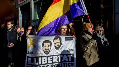 Ambos son pasajeros de ese minibús descapotable con asientos de terciopelo al que asemeja su emplazamiento en la sala noble del Tribunal Supremo. Una barcaza de 12 plazas que conduce Junqueras en el primer asiento de la izquierda. Y que separa a los Jordis en filas distintas. Sànchez está en la segunda. Cuixart en la tercera. Ambos responden al mismo delito, el de rebelión. Y los dos se exponen a la misma pena, 17 años, pero han escogido abogados distintos.