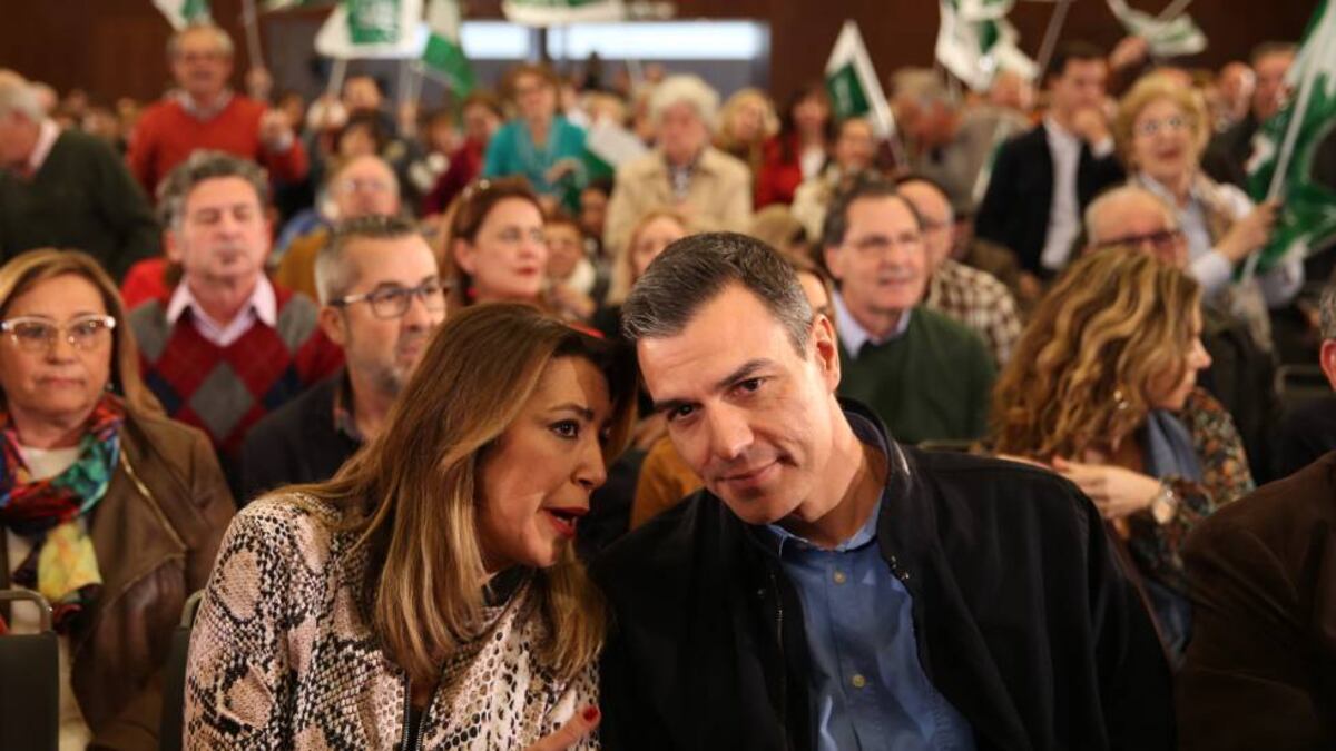 Junto a Susana Díaz. El secretario general de los socialistas comparece ante los militantes socialistas andaluces junto a Susana Díaz, líder del PSOE de Andalucía. Ambos coincidieron por última vez en público el pasado diciembre, durante la campaña electoral al Parlamento andaluz.