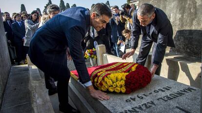 Sánchez rindió tributo a los dos grandes símbolos del exilio, Azaña y Machado, en sus tumbas. Uno fue el político e intelectual más carismático, que hasta el último día pidió "Paz, piedad, perdón", el lema que quedó de su famoso discurso en Barcelona en 1938, en plena guerra. El otro, el poeta, escribió "Españolito que vienes al mundo, te guarde Dios. Una de las dos Españas ha de helarte el corazón", toda una síntesis del desgarro español.