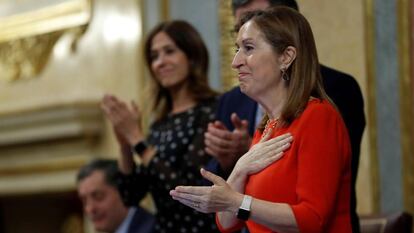 En los pasillos de la cámara se cruzaban entonces los portavoces que se asaeteaban los datos del sondeo como amenazas o chanzas mientras se daban el pésame o ánimos ante la quiniela en marcha ya de las listas. La portavoz del PP, Dolors Montserrat, se mofaba de que el responsable del CIS, Félix Tezanos, no le hubiera pronosticado el 100% de los votos a Sánchez. Y una diputada popular bromeaba con un compañero de bancada: “Yo quiero un novio que me mienta como el CIS”. Lo que nadie pone en duda es que el PSOE dispondrá de más escaños que ahora. El factor Gobierno, la proyección que facilita La Moncloa y el BOE, más el espacio que las crisis de Podemos ha dejado por la izquierda y el escoramiento de Ciudadanos a la derecha, entrega a los socialistas mucho más campo de juego en el centro. Una media de casi todas las encuestas le da entre 20 y 40 actas más que las 84 actuales, su peor resultado histórico.
