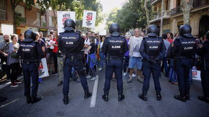 Los dos episodios ocurrieron casi al mismo tiempo. En el cerco a la comitiva judicial frente a la sede de Economía —que congregó a 50.000 personas— sitúan los fiscales el inicio de la violencia del procés. Las defensas también han tratado de introducir en el juicio, a veces con calzador, el fuerte despliegue policial junto a la sede de la formación anticapitalista. La CUP es una de las principales impulsoras del procés —forzó la salida de Artur Mas, presionó para celebrar la consulta y lideró la movilización en la calle— y, sin embargo, es la gran ausente en la sala de plenos del Supremo.