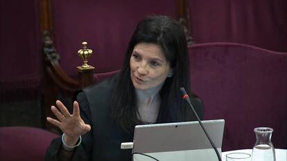 Cuando el fiscal termina su interrogatorio, dejando constancia de que “el procesado rebelde” —así llama Zaragoza a Puigdemont cada vez que puede— desoyó en dos ocasiones la petición de los Mossos para que desconvocara el referéndum, toma la palabra la abogada del Estado Rosa María Seoane. No tiene un papel fácil. En primer lugar, porque siempre le toca interrogar después de los fiscales. Y sobre todo porque no estaba previsto que acudiera al juicio. Solo pudo acceder después de que, a finales de noviembre, el Gobierno decidiera destituir a Edmundo Bal como abogado jefe del departamento de penal y, por consiguiente, responsable de defender la posición del Estado. Bal, que conocía las investigaciones al dedillo, pretendía acusar a los líderes independentistas de rebelión, mientras que la abogada general del Estado, Consuelo Castro, se inclinaba —a instancias del Gobierno— por el delito de sedición, que conlleva penas menores. El caso es que Seoane, menos bregada que Bal, ha ido de menos a más y logra apuntarse un tanto importante. Cuando Quevedo está relatando los incidentes relacionados con el registro, el día 20 de septiembre, de la Consejería de Economía, la abogada del Estado pregunta:
