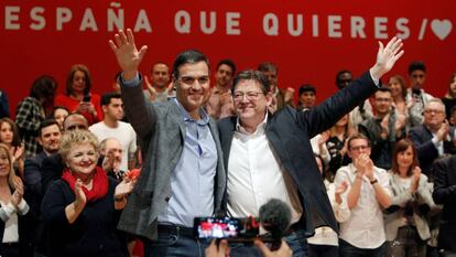 El líder socialista ha protagonizado un baño controlado de masas, en un espacio de aforo limitado pero lleno hasta los topes como el paraninfo de la Universidad de Alicante, junto al presidente de la Generalitat valenciana, Ximo Puig, que también se medirá en las urnas el próximo 28 de abril, y el vicepresidente de la Comisión Europea, el socialista holandés Frans Timmermans. "Pido un Gobierno que hable con todos pero que dependa única y exclusivamente de sus fuerzas. Pido a los españoles y españolas una amplia mayoría parlamentaria. Un Gobierno fuerte para una España fuerte. Eso es lo que tiene que salir de las urnas", ha reclamado.