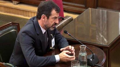 El comisario, que fue designado jefe de los Mossos por el Gobierno central tras la aplicación del 155, abonó con su testimonio la tesis de la Fiscalía contra los líderes políticos, pero rebatió la que sitúa a la policía autonómica como una pata de la rebelión. Una pata no imprescindible, pero sí importante por su capacidad intimidatoria. Según López, los Mossos actuaron como se había acordado con los otros dos cuerpos policiales y fueron estos los que, sin avisar, rompieron lo pactado. Como prueba de su lealtad, contó que, tras esa reunión con la cúpula del Govern, llamó al coronel de la Guardia Civil Diego Pérez de los Cobos, nombrado coordinador del dispositivo policial, y le puso al corriente del encuentro. Un detalle que, según López, muestra que había “total colaboración” entre la policía catalana y los cuerpos estatales.
