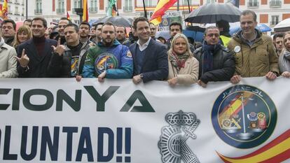 La derecha coincide detrás de una pancarta en su pugna por el voto de los policías