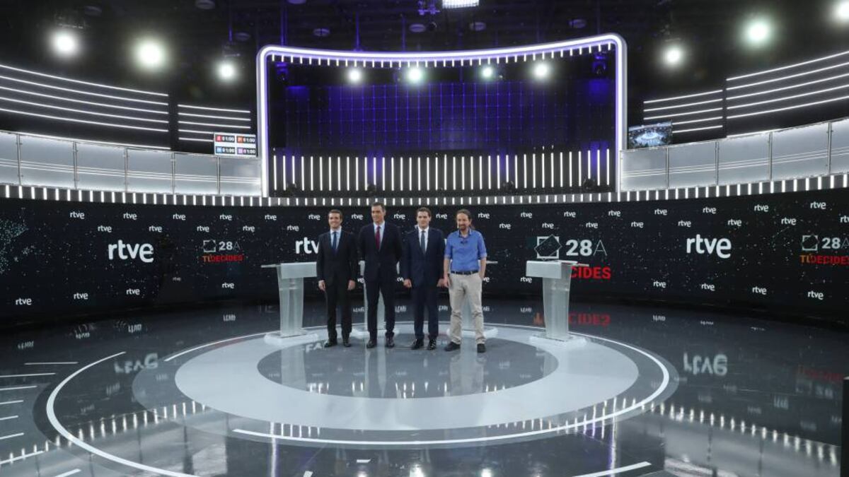 Nadie gana unas elecciones sin saber contar una historia. La campaña electoral empezó este lunes definitivamente a las diez de la noche, tras un lustro de precampaña interminable, con un debate en RTVE en el que la única verdadera historia fue el fuego cruzado. Si el estado normal de la atmósfera política es la turbulencia, el esperadísimo debate electoral se saldó anoche en medio de un clima desapacible, bronco, a ratos huracanado. “España ya no va bien”, resumió Pablo Casado (PP) parafraseando a José María Aznar a las primeras de cambio, a pesar de que la economía española es una de las que más crece en el Atlántico norte. “Lleva en la frente escrita la palabra indulto”, espetó Albert Rivera (Ciudadanos) en su primera intervención, pese a que no hay sentencia firme ni nada que se le parezca en el juicio del procés. Pablo Iglesias (Podemos) estuvo más conciliador, pero en cuanto pudo acabó dejando claro que lo que más le interesa es que el PSOE “deje claro” de antemano con quién se va a aliar, con su partido o con Cs. El más fuerte es el que está solo, decía Ibsen: Pedro Sánchez, que encabeza las encuestas después de 10 meses en La Moncloa, fue la diana preferida de casi todos los ataques y se empeñó en mantener el tono presidencial, medio aburrido, que le ha caracterizado durante la campaña.