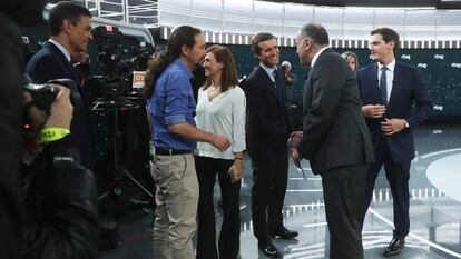 No terminaba de encajar la escenografía futurista del plató de TVE con la indumentaria y discurso trasnochado de los pasajeros del Enterprise. Rivera abjuraba del viejo bipartidismo. Sánchez desenterraba la corrupción. Casado hablaba de ETA. E Iglesias, atribuyéndose a su antojo la representación de la gente, estuvo a punto de leernos entera la Constitución del 78.