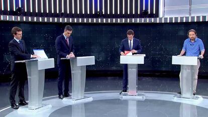 Ese es el punto central de la campaña de Podemos, el de alertar sobre un posible pacto del PSOE con Ciudadanos, aunque la ejecutiva del partido de Albert Rivera ha aprobado cerrar la puerta a ese acuerdo, como el candidato naranja recordó también ayer durante el debate electoral. Su apuesta es un pacto con el PP para el que ayer volvió a tender la mano a Casado, sin respuesta. En el segundo asalto, el debate de esta noche, los pactos poselectorales volverán a dar previsiblemente momentos de choque entre los candidatos.