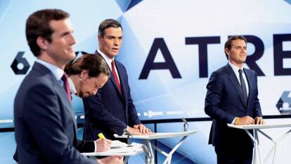 Rivera ha contestado en ese momento a Casado y le ha recordado que prometió que bajaría los impuestos. "Yo le pido que seamos más liberales y que los bajemos", ha interpelado Rivera en alusión a una hipotética alianza entre ambas formaciones después de las elecciones. El presidente del Gobierno y candidato del PSOE, Pedro Sánchez, después de que Vallés haya interrumpido el enfrentamiento, ha asegurado que la pugna entre Casado y Rivera son "las primarias de la derecha".