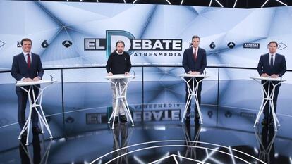 Pero lo más llamativo resultó que Casado sí dejara en esta ocasión un poco el traje del “valor seguro” en su despacho de Génova, 13 para pringarse en el cruce de las primarias de la derecha contra Rivera. Sin ofrecerle ningún ministerio ni aceptar una hipotética cartera de un Ejecutivo liberal. El empacho de improperios se exageró tanto que Pablo Iglesias, que pasaba por el plató entre anuncios, poses y espacios patrocinados, se atragantó de pedir mesura y altura de Estado para Sánchez, un socio que le elude o ignora y que quiere gobernar, si llega a los 135 escaños, solo con su partido e independientes progresistas de su cuerda.
