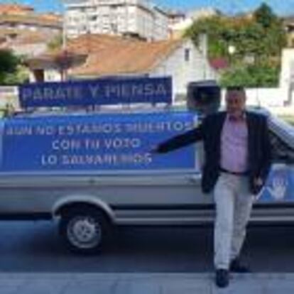 Un aspirante a alcalde gallego pide el voto en coche fúnebre. Ciudadanos le dice a Carmena y Errejón dónde pueden besarse