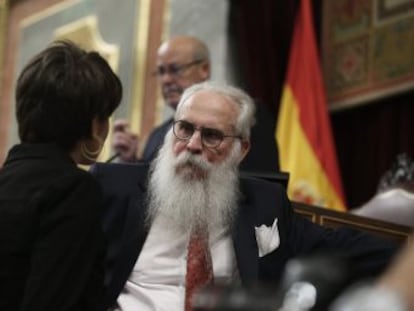 Agustín Javier Zamarrón, el diputado socialista por Burgos que a sus 73 años dirigió este martes la constitución del Congreso, fue uno de los personajes del día por su parecido con Valle-Inclán y las expresiones solemnes —y en ocasiones de tiempos olvidados para la mayoría de los presentes— con las que dirigió las votaciones para elegir a los siete miembros de la Mesa. Médico jubilado, se refirió a la aglomeración que se originó en la primera de ellas como un “trombo de difícil solvencia”.