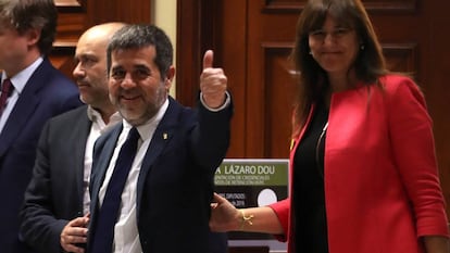Junts per Catalunya ha dejado este viernes en manos de Jordi Sànchez, Jordi Turull y Josep Rull la decisión sobre si mantienen el acta de diputado en el Congreso o no, después de que la Mesa que preside la socialista Meritxell Batet haya decidido suspenderlos como diputados al estar procesados por un delito de rebelión. Laura Borràs, diputada de la formación independentista, ha explicado en rueda de prensa que todavía no han podido discutir sobre este tema con los tres diputados que se encuentran en prisión preventiva por el juicio del procés. "Nos tendremos que reunir y respetaremos su decisión sobre si mantienen el acta o no", ha dicho. Sin embargo, ha apuntado que los diputados quieren "estar ahí donde la ciudadanía les ha llevado" y que "mantienen su compromiso firme".