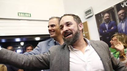 El presidente de VOX, Santiago Abascal, y el candidato a la alcaldía de Madrid, Javier Ortega Smith, este domingo. En vídeo, declaraciones de Espinosa de los Monteros.Foto: atlas | Vídeo: Eduardo Parra (EP) | ATLAS