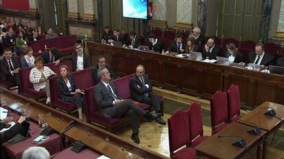 Hay un primer bloque de vídeos. En ellos aparecen unos señores importantes —Puigdemont, Junqueras, Cuixart, Sànchez— que, durante meses, subidos a elegantes escenarios, con una puesta en escena impecable y la imprescindible retransmisión de TV3, van repitiendo un bello discurso, directo a los sentimientos, al que es muy difícil resistirse. Democracia, paz, libertad. ¿Quién va a sospechar que Jordi Sànchez, con el punto justo de ronquera y de emoción, los esté dirigiendo a una confrontación directa con el Estado? El segundo bloque ya sube de nivel. Es 20 de septiembre. Agentes de la Guardia Civil, en cumplimiento de una orden judicial, han entrado en la Consejería de Economía. De nuevo aparecen en escena Sànchez, Cuixart, Junqueras, Forcadell… Su sola presencia legitima la protesta. Miles de personas rodean la comitiva judicial. El eslogan más exitoso es: “Esta noche os vais sin coche”. Hay un vídeo, aportado por las defensas, en el que se ve a Jordi Sànchez charlando en el zaguán de la consejería con el mando de la Guardia Civil. La conversación es pacífica, pero esa noche, efectivamente, los agentes se van sin sus coches, que han sido destrozados. Antes del tercer vídeo, hay una escena que no grabó TV3 pero de la que se ha tenido constancia durante el juicio. El jefe de los Mossos d’Esquadra, Josep Lluìs Trapero, se reúne por dos veces con Puigdemont, Junqueras y Forn. Les advierte de que celebrar el referéndum es una temeridad, de que se pueden producir altercados, una explosión de violencia. Trapero, como experto policía, sabe que el Estado —que ya está enviando a 6.000 policías a Cataluña— no permitirá celebrar un referéndum que ha sido declarado ilegal. En aquellas reuniones, los políticos se mantuvieron en sus trece y Puigdemont aún fue más allá: